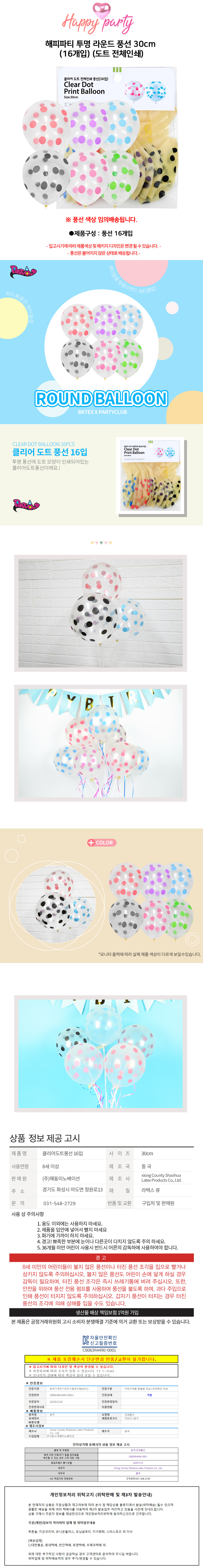 해피파티 투명 라운드 풍선 30cm 16개입 도트 전체인쇄