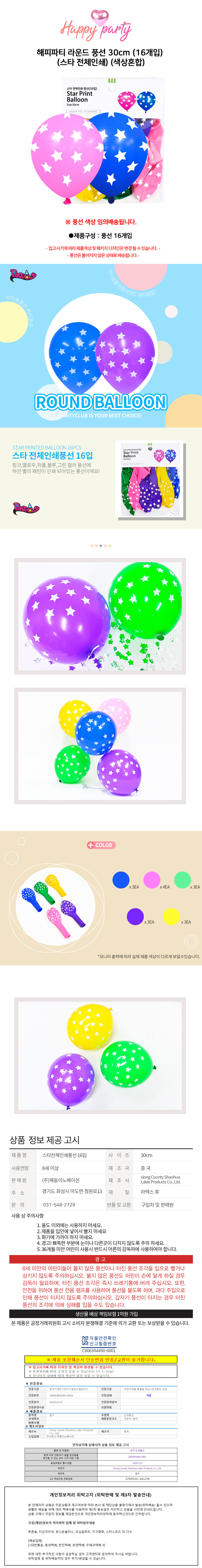 해피파티 라운드 풍선 30cm 16개입 스타 전체인쇄 색상혼합