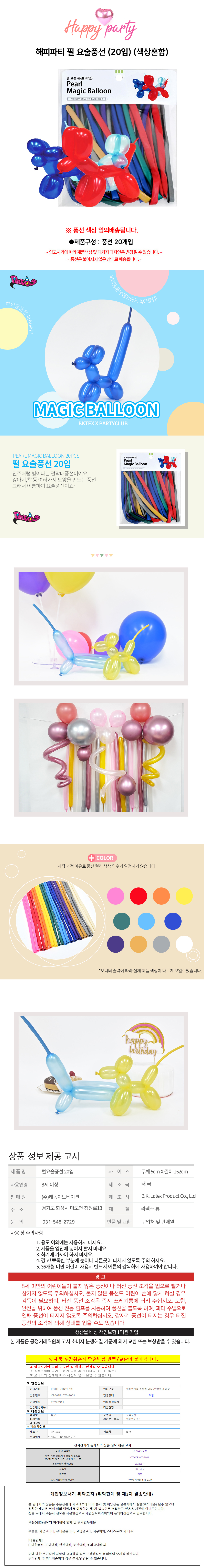 해피파티 펄 요술풍선 20입 색상혼합