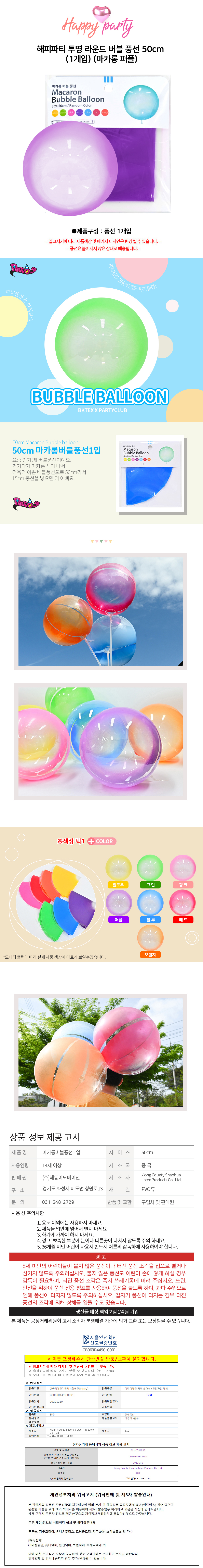 해피파티 투명 라운드 버블 풍선 50cm 1개입 마카롱 퍼플