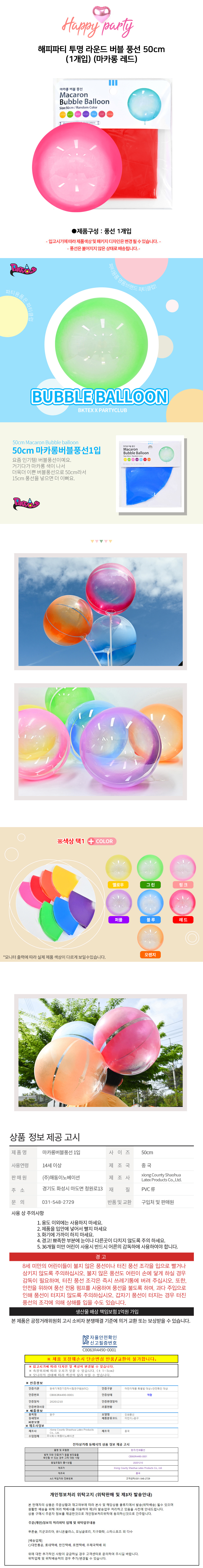 해피파티 투명 라운드 버블 풍선 50cm 1개입 마카롱 레드