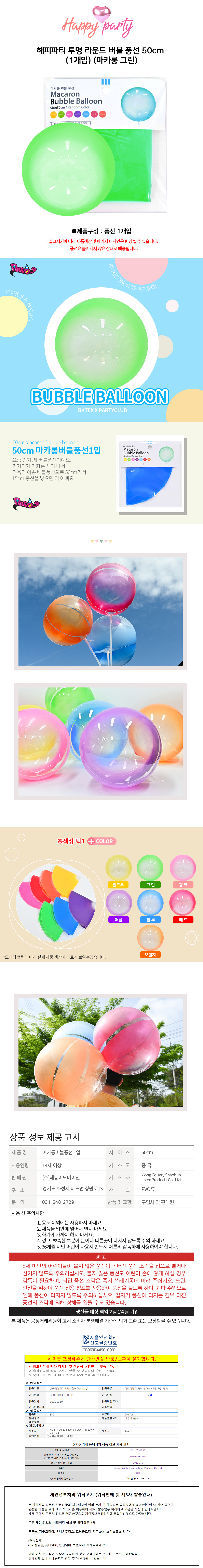 해피파티 투명 라운드 버블 풍선 50cm 1개입 마카롱 그린