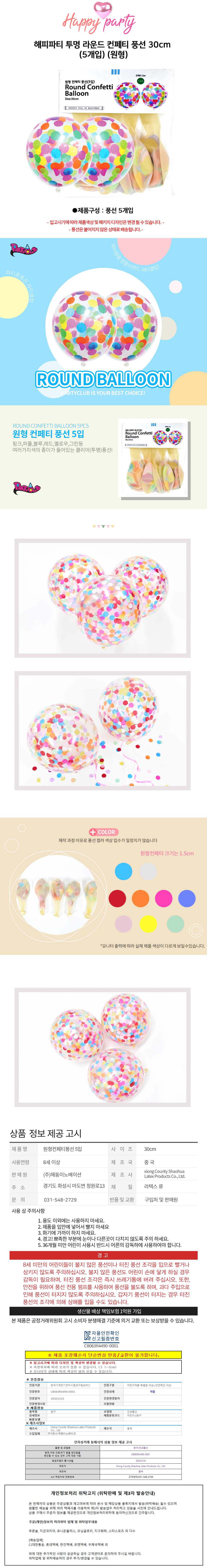 해피파티 투명 라운드 컨페티 풍선 30cm 5개입 원형