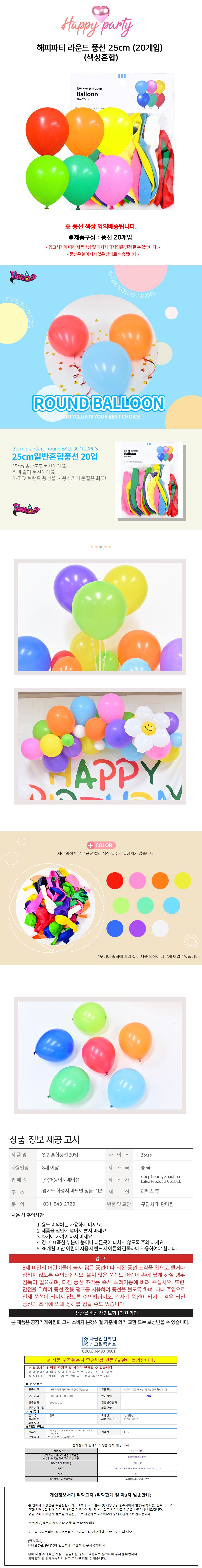 해피파티 라운드 풍선 25cm (20개입) (색상혼합)