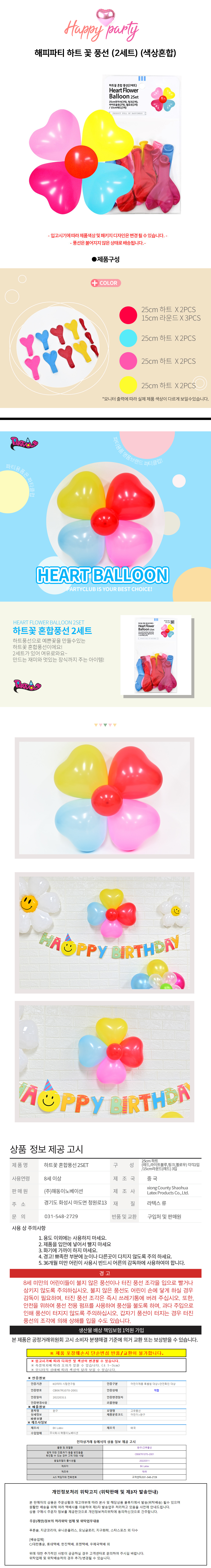 해피파티 하트 꽃 풍선 (2세트) (색상혼합)