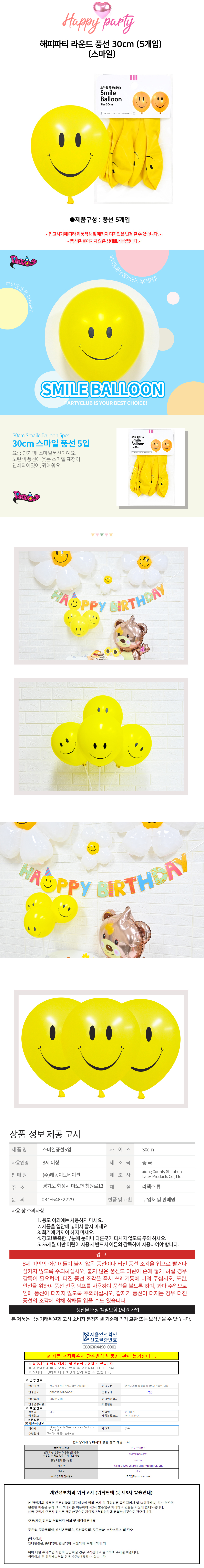 해피파티 라운드 풍선 30cm 5개입 스마일