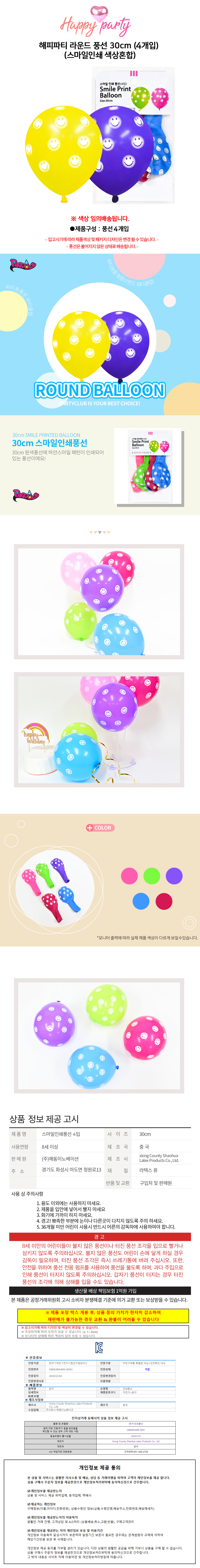 해피파티 라운드 풍선 30cm (4개입) (스마일인쇄 색상혼합)