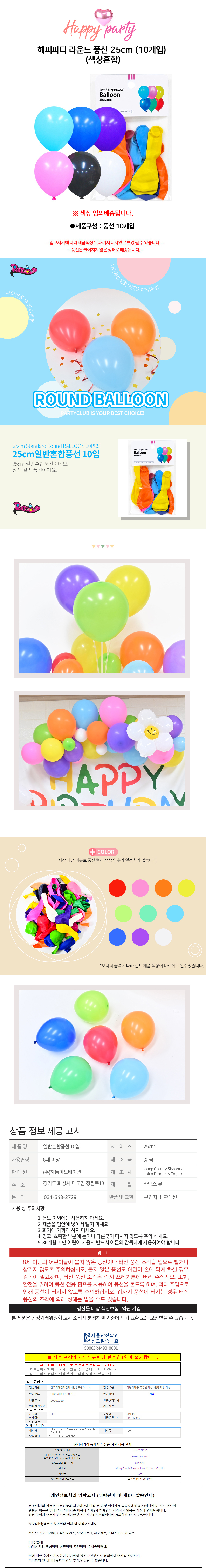 해피파티 라운드 풍선 25cm 10개입 색상혼합
