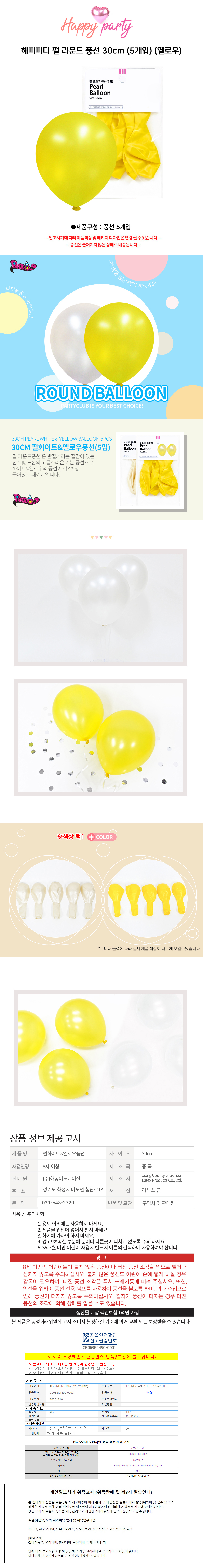 해피파티 펄 라운드 풍선 30cm 5개입 옐로우