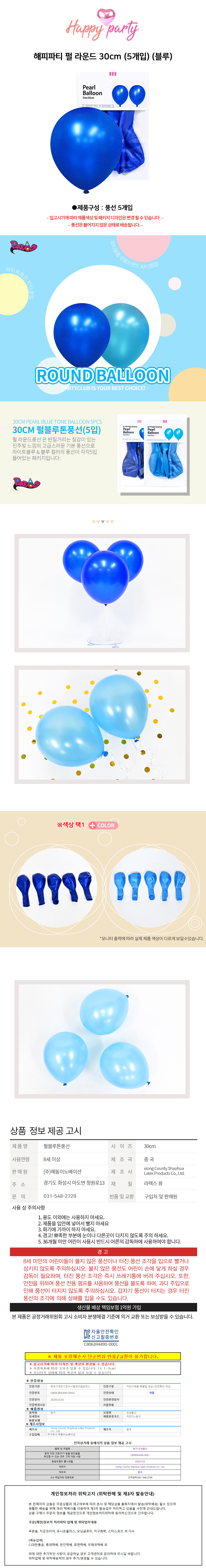 해피파티 펄 라운드 30cm 5개입 블루