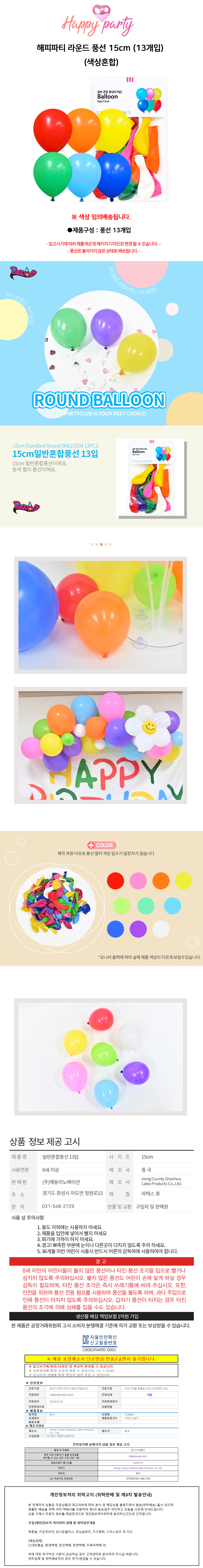 해피파티 라운드 풍선 15cm 13개입 색상혼합