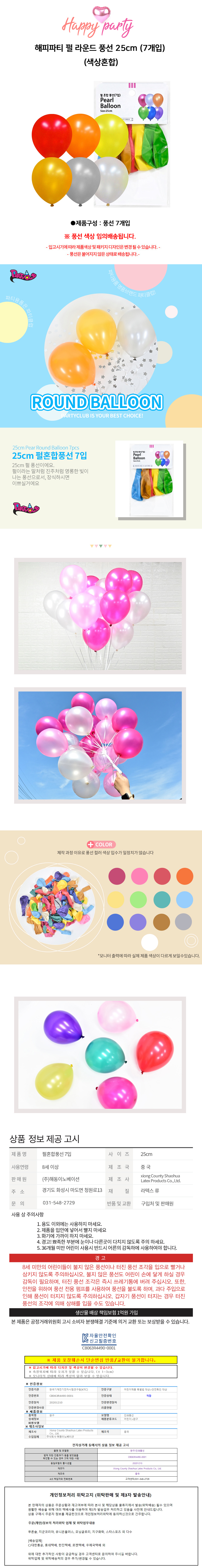 해피파티 펄 라운드 풍선 25cm 7개입 색상혼합