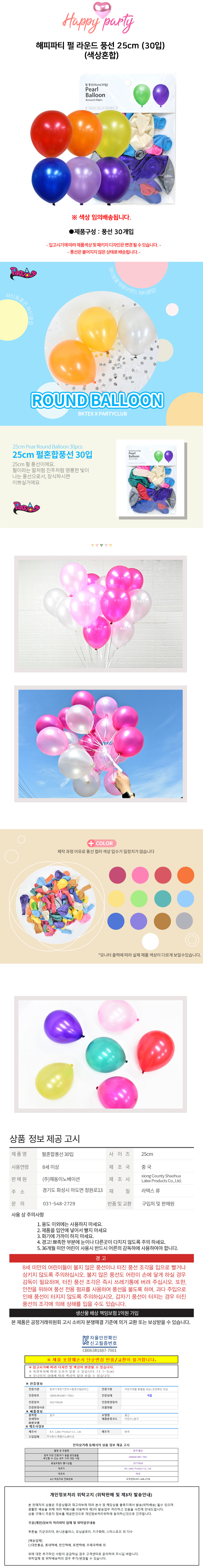 해피파티 펄 라운드 풍선 25cm 30입 색상혼합