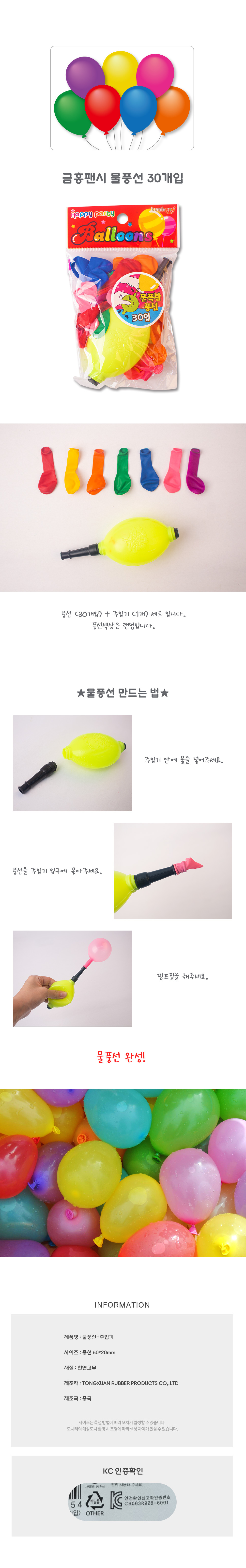 | 품명 및 모델명 | 금홍팬시 물폭탄 물풍선 30개입 |