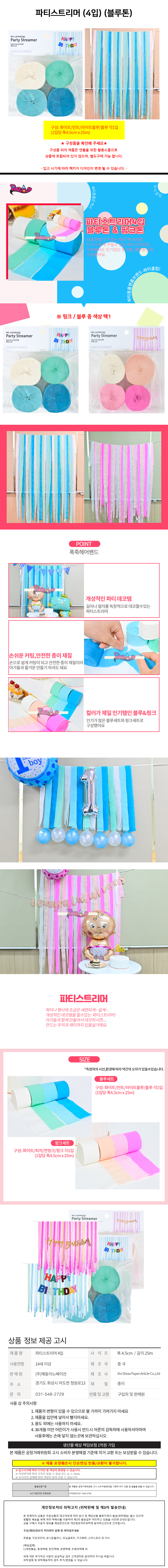 해피파티 파티스트리머 4입 블루톤