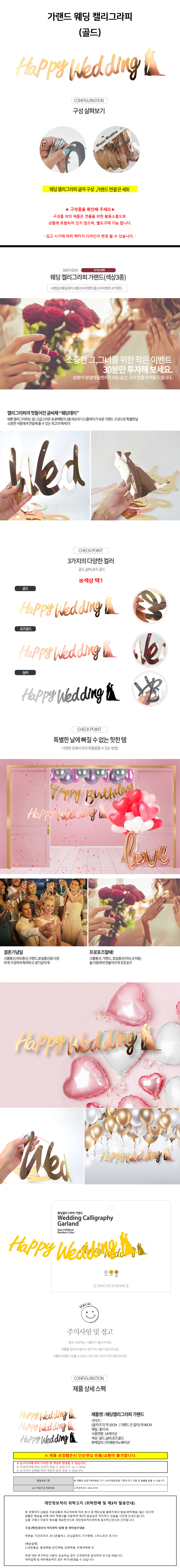 해피파티 가랜드 웨딩 캘리그라피 골드