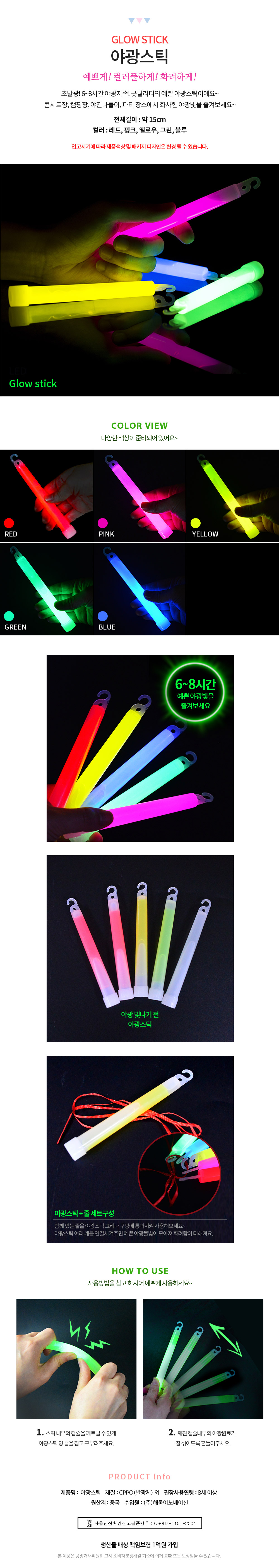 | 품명 및 모델명 | 야광스틱 6인치 1개입 |