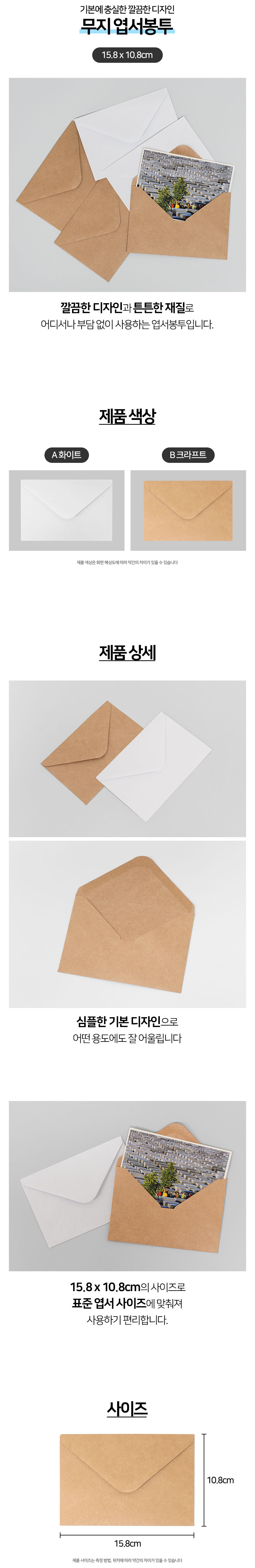 무지 엽서 봉투 편지 청첩장 카드 초대장 158x108mm