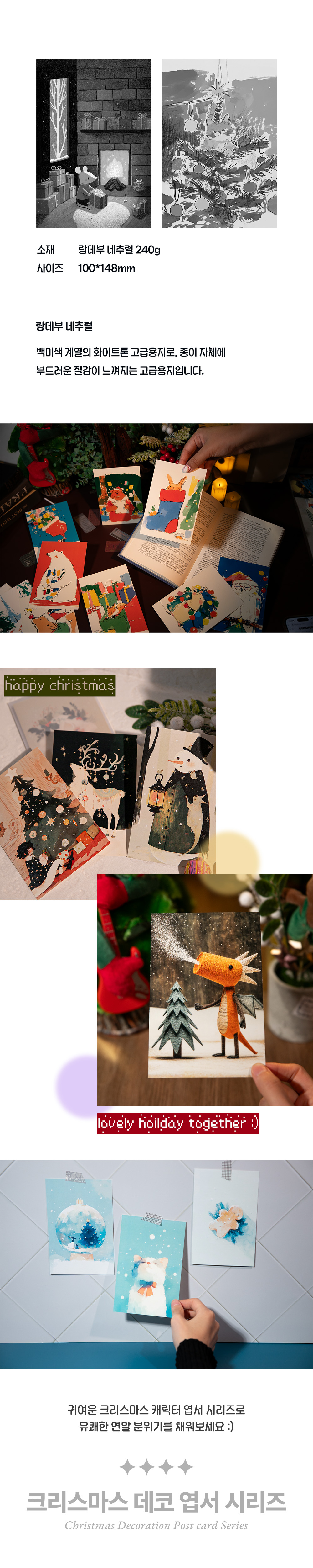 시즌2 6종 크리스마스 엽서 카드 팩 10장 세트 산타 클로스 트리 눈사람 루돌프 사진