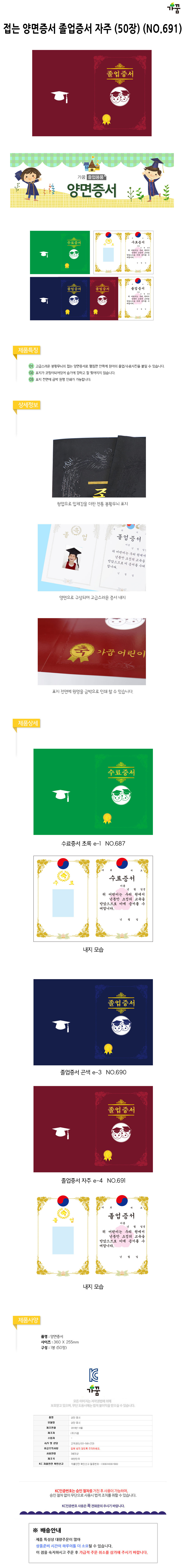 가꿈 27500 접는 양면증서 졸업증서 자주 50장 NO.691