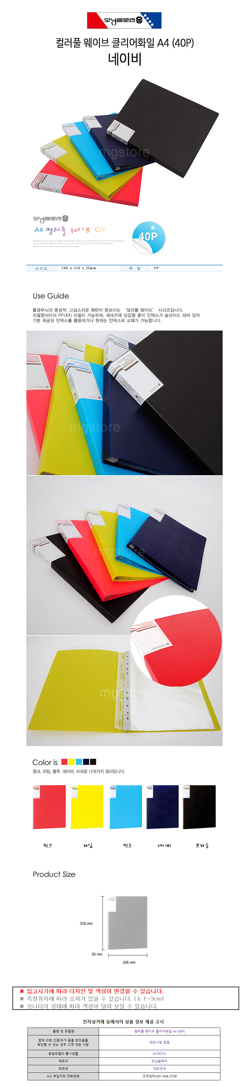 모닝글로리 컬러풀 웨이브 클리어화일 A4 40P 네이비