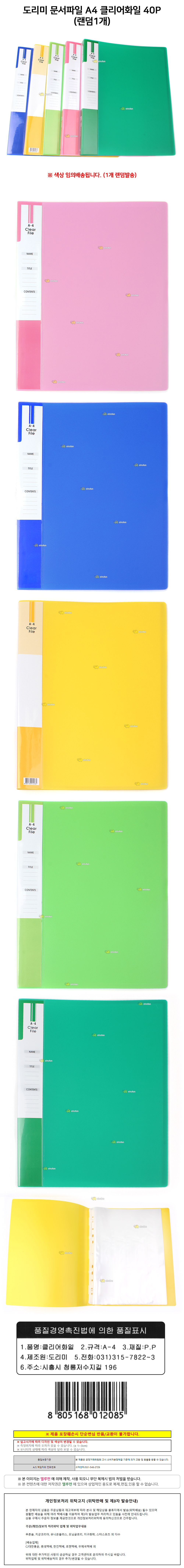 도리미 문서파일 A4 클리어화일 40P 랜덤1개