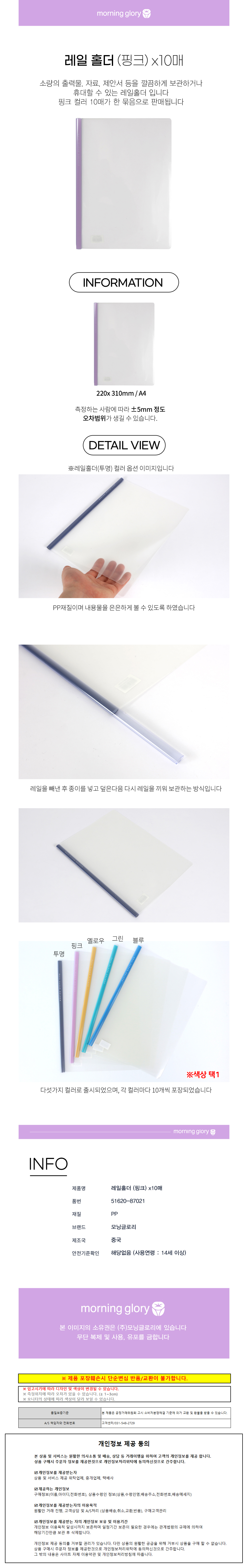 모닝글로리 폴더화일 튼튼 레일홀더 (핑크) (10개)