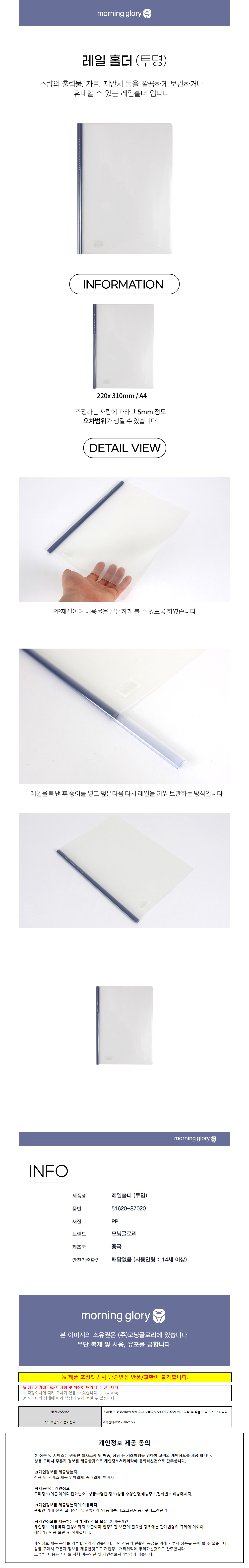 모닝글로리 폴더화일 튼튼 레일홀더 (투명) (10개)
