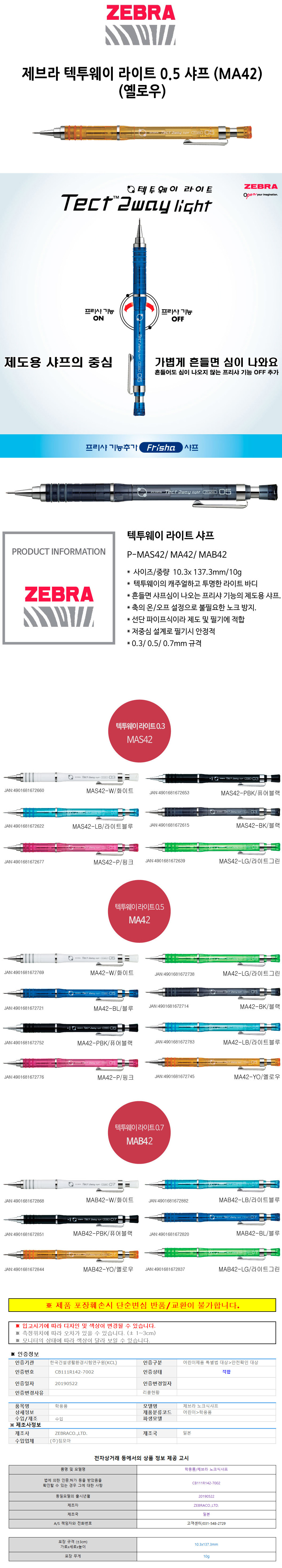 제브라 텍투웨이 라이트 0.5 샤프 MA42 옐로우