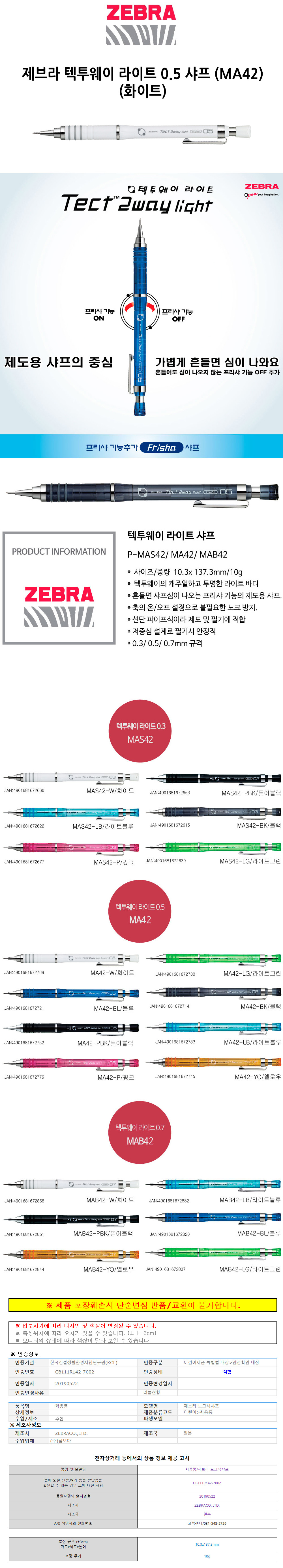 제브라 텍투웨이 라이트 0.5 샤프 MA42 화이트