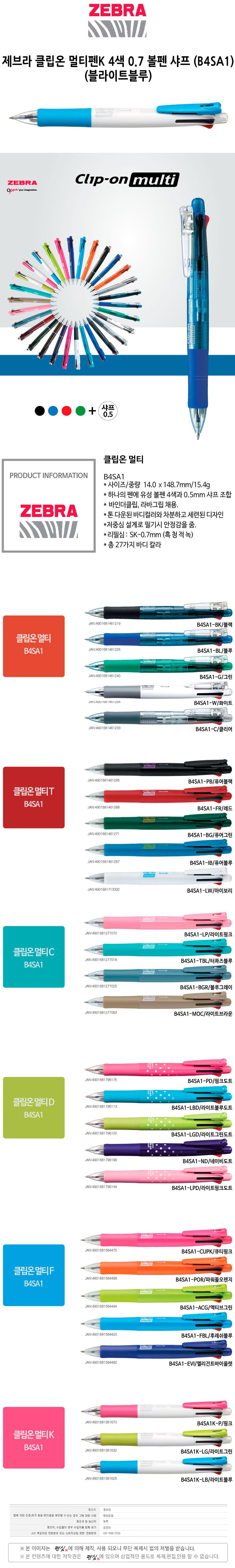 제브라 클립온 멀티펜K 4색 0.7 볼펜 샤프 B4SA1 블라이트블루