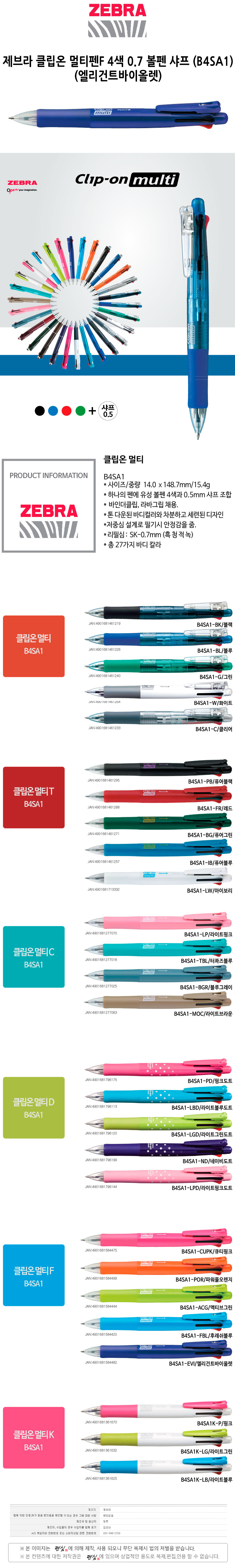 제브라 클립온 멀티펜F 4색 0.7 볼펜 샤프 B4SA1 엘리건트바이올렛