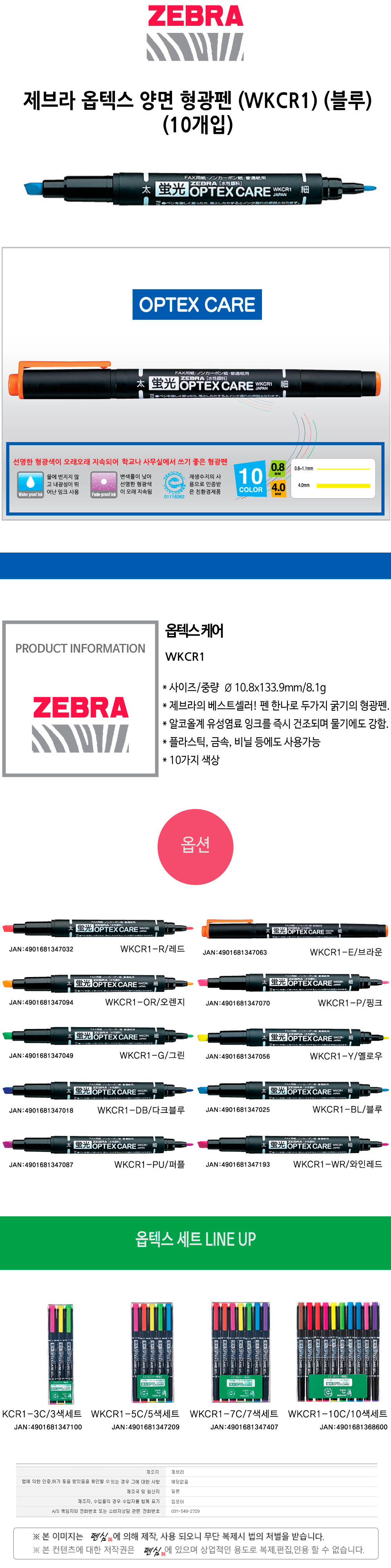 제브라 옵텍스 양면 형광펜 WKCR1 블루 10개입