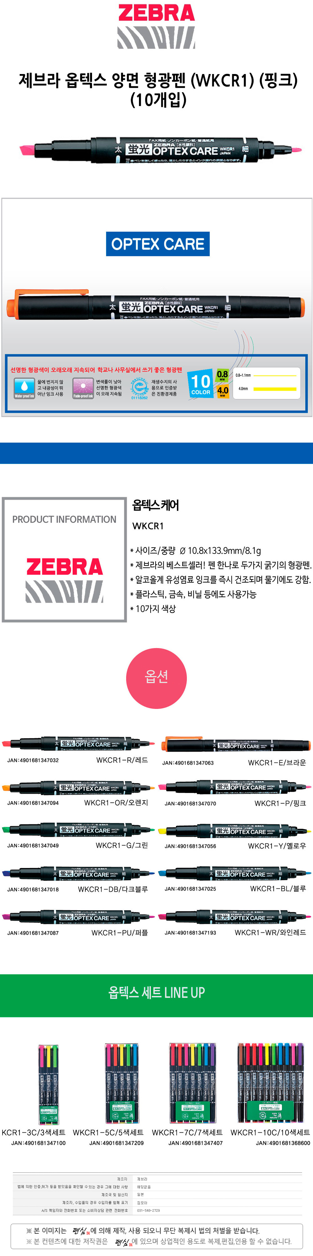 제브라 옵텍스 양면 형광펜 WKCR1 핑크 10개입