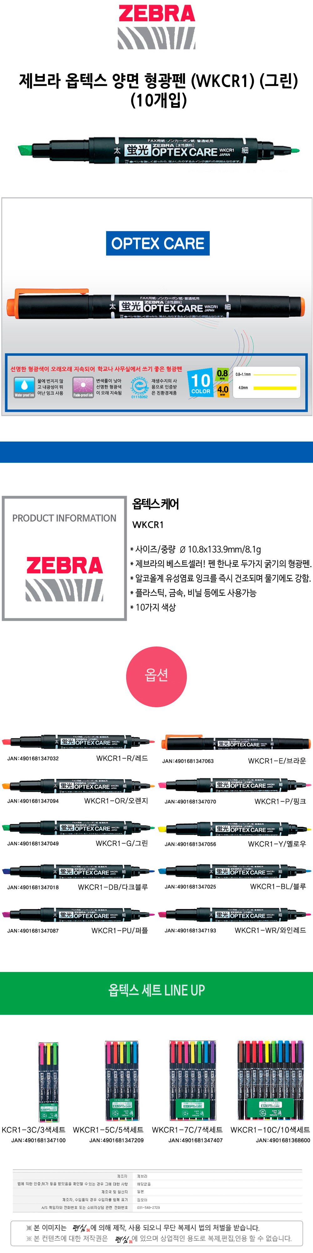 제브라 옵텍스 양면 형광펜 WKCR1 그린 10개입