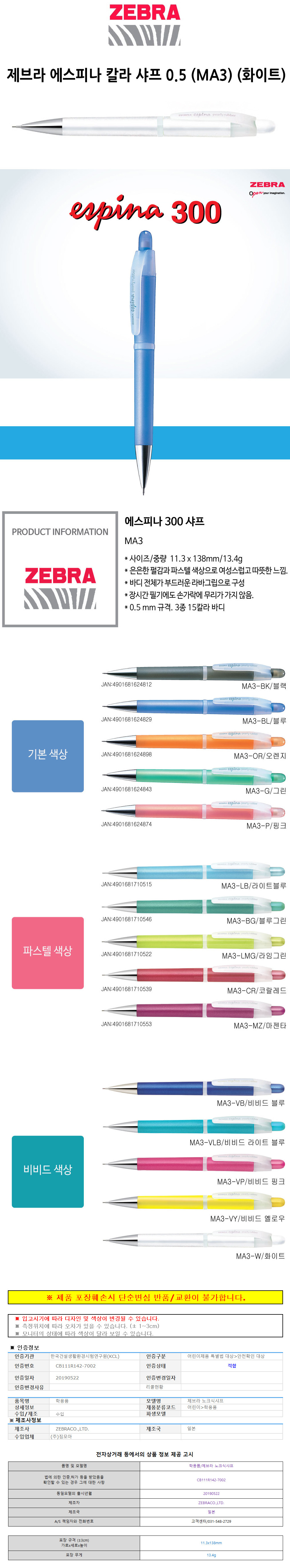 제브라 에스피나 칼라 샤프 0.5 MA3 화이트