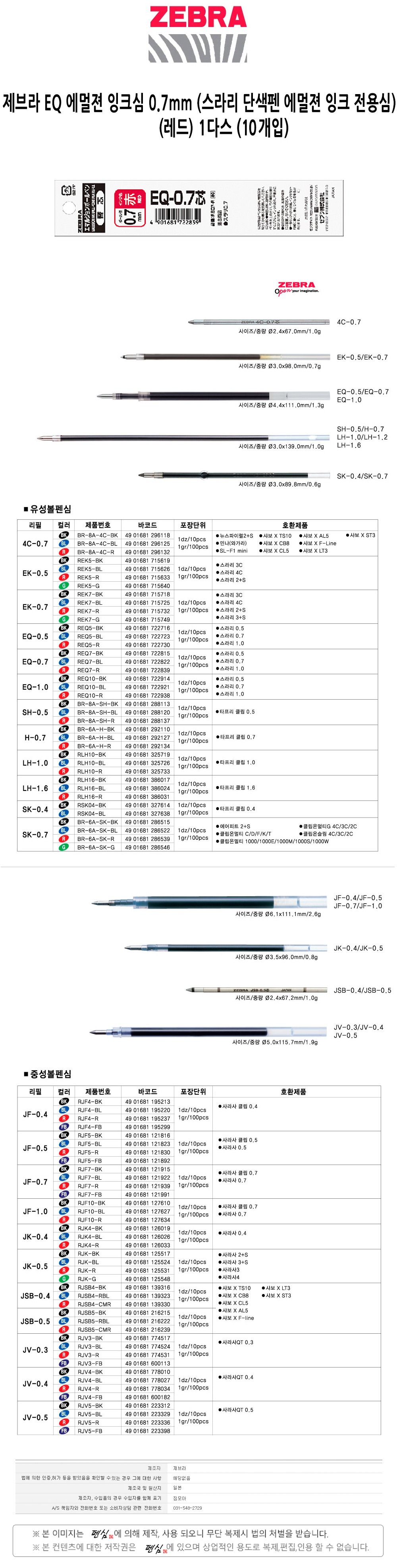 제브라 EQ 에멀젼 잉크심 0.7 레드 1다스 10개입 스라리 단색펜 에멀젼 잉크 전용심