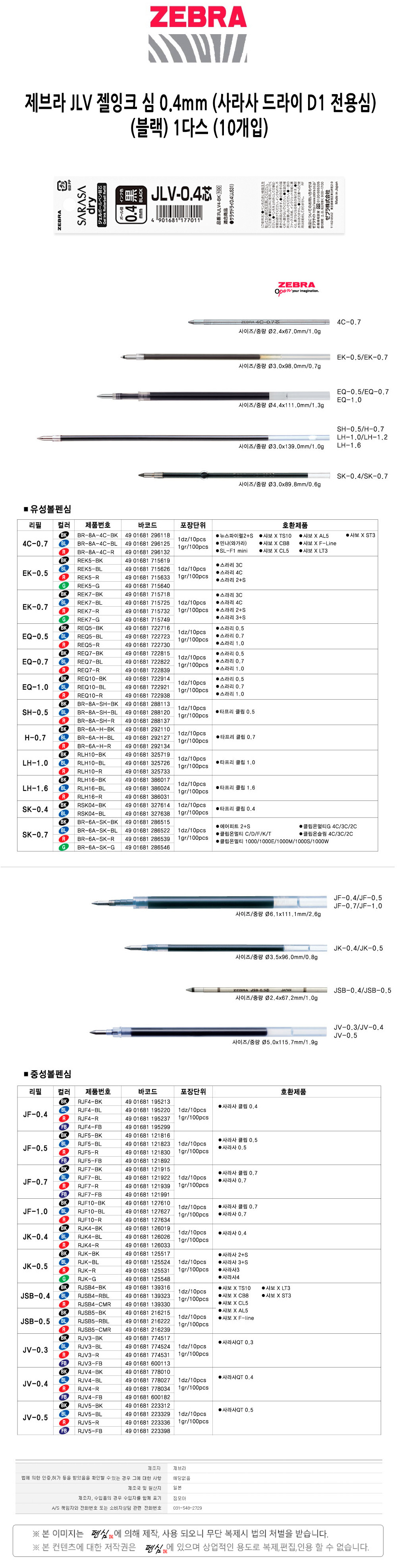 제브라 JLV 젤잉크 심 0.4 사라사 드라이 D1 전용심 블랙 1다스 10개입