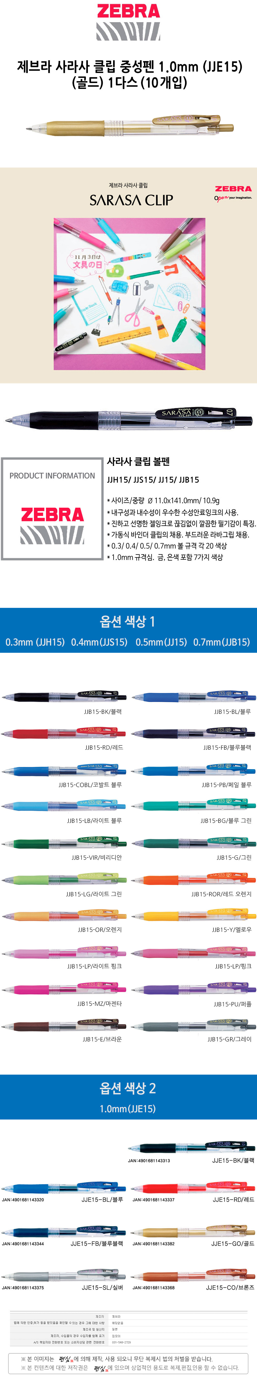 제브라 사라사 클립 중성펜 1.0 JJE15 골드 1다스 10개입