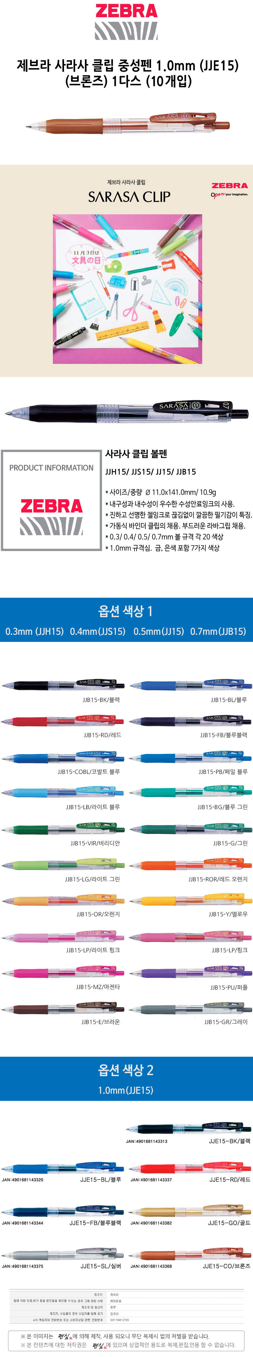 제브라 사라사 클립 중성펜 1.0 JJE15 브론즈 1다스 10개입