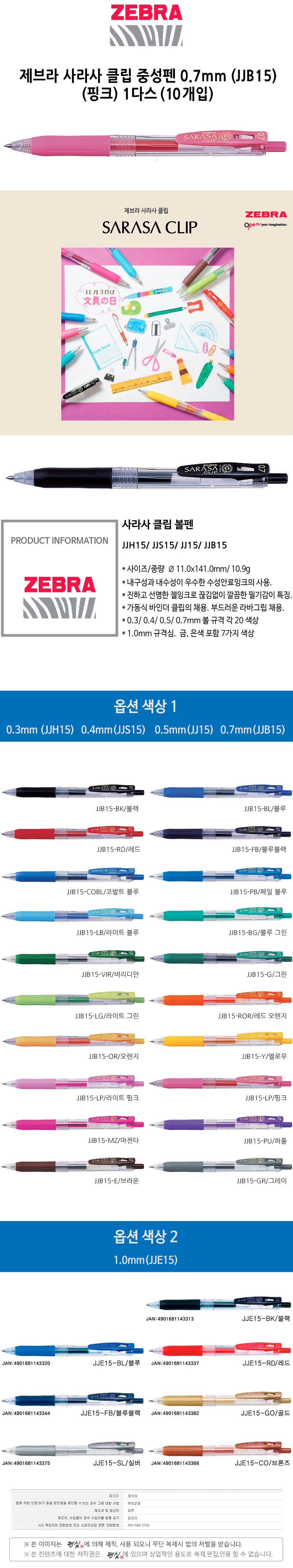 제브라 사라사 클립 중성펜 0.7 JJB15 핑크 1다스 10개입