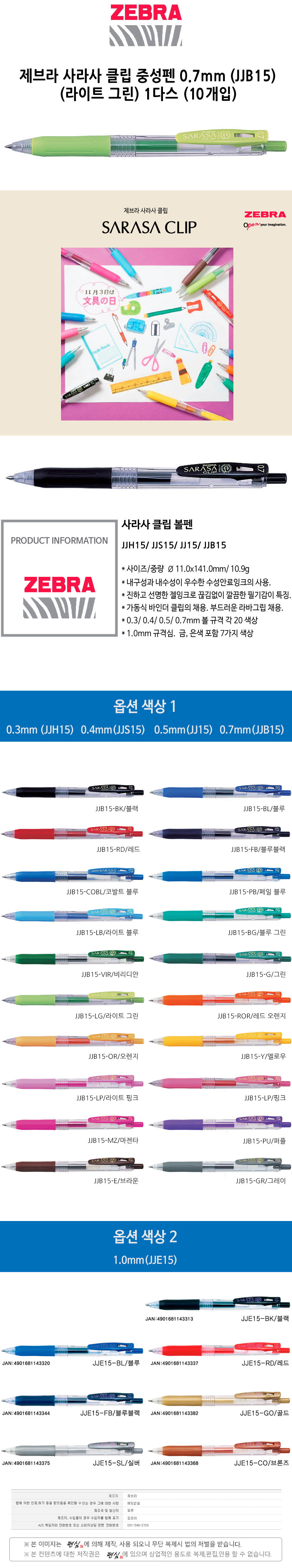 제브라 사라사 클립 중성펜 0.7 JJB15 라이트 그린 1다스 10개입