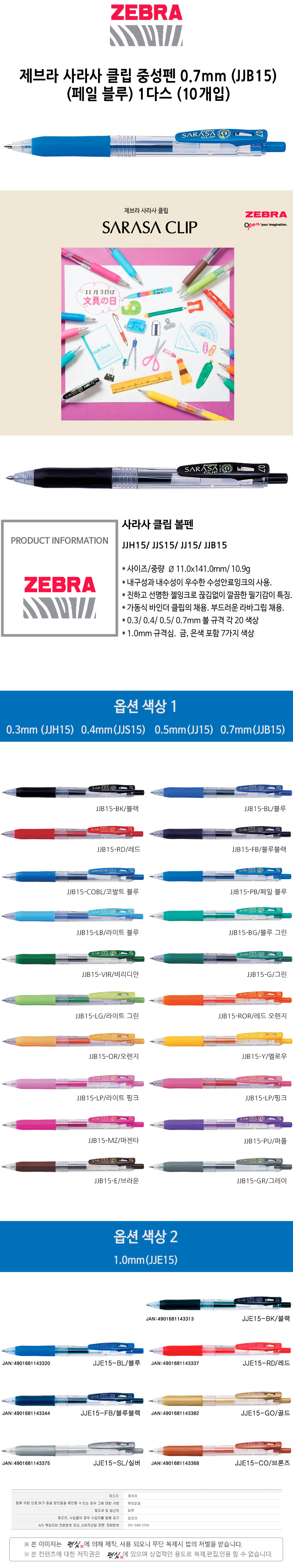 제브라 사라사 클립 중성펜 0.7 JJB15 페일 블루 1다스 10개입