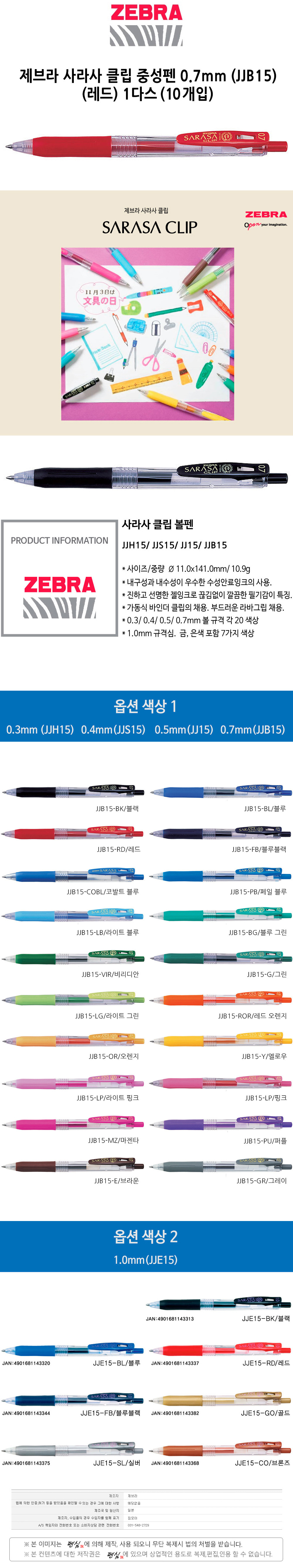 제브라 사라사 클립 중성펜 0.7 JJB15 레드 1다스 10개입