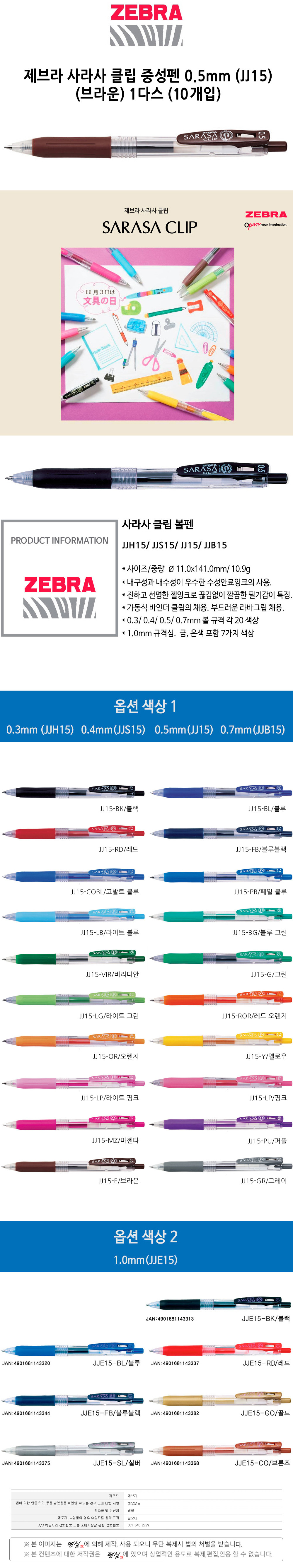 제브라 사라사 클립 중성펜 0.5 JJ15 브라운 1다스 10개입
