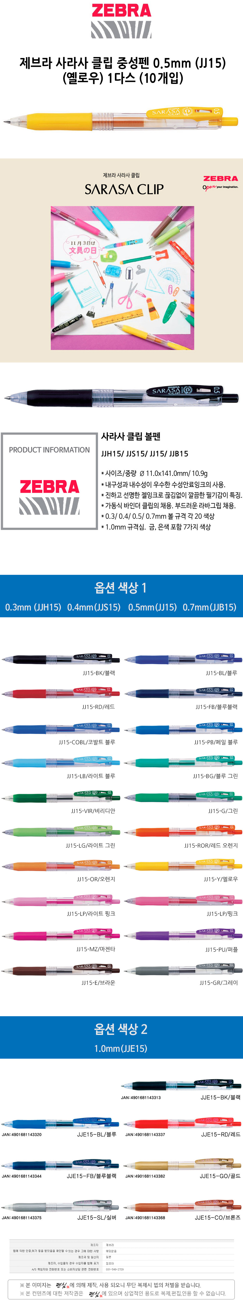 제브라 사라사 클립 중성펜 0.5 JJ15 옐로우 1다스 10개입