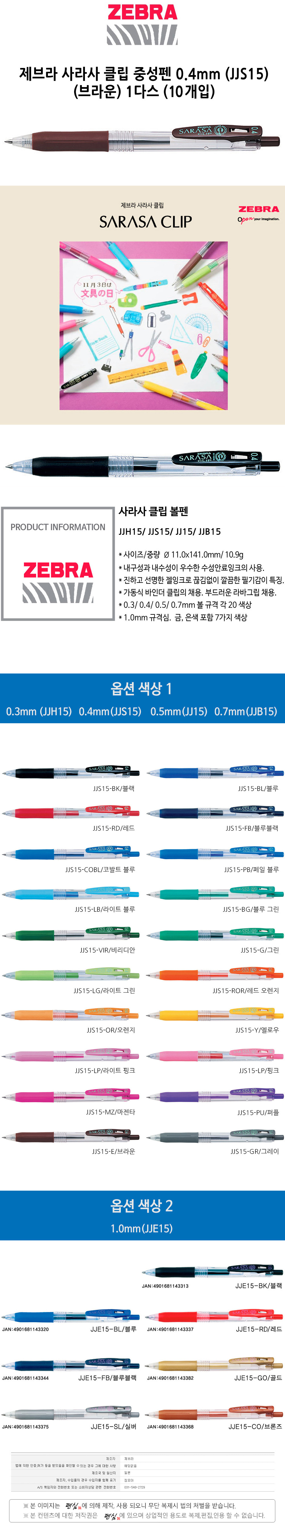 제브라 사라사 클립 중성펜 0.4 JJS15 브라운 1다스 10개입