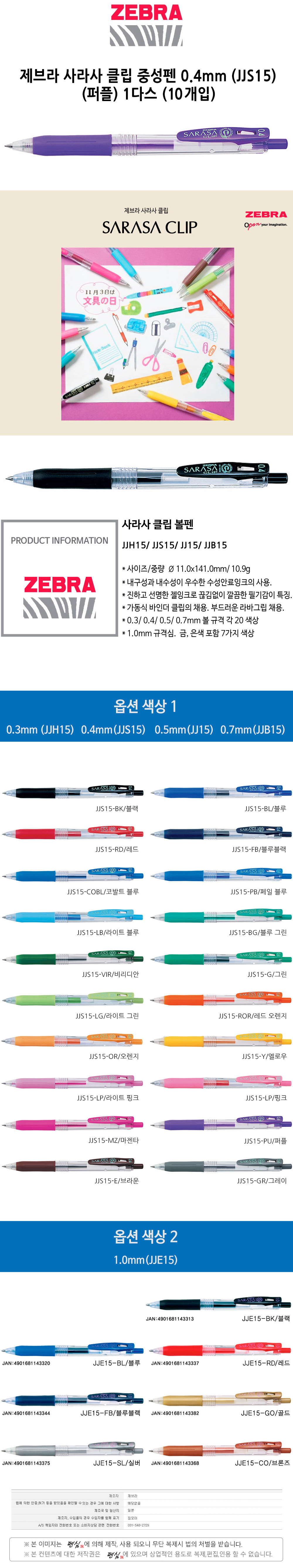 제브라 사라사 클립 중성펜 0.4 JJS15 퍼플 1다스 10개입