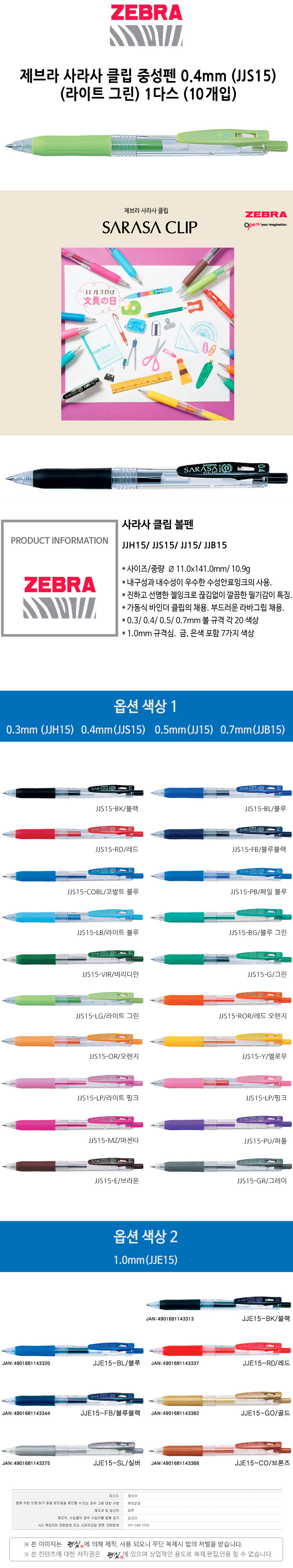 제브라 사라사 클립 중성펜 0.4 JJS15 라이트 그린 1다스 10개입