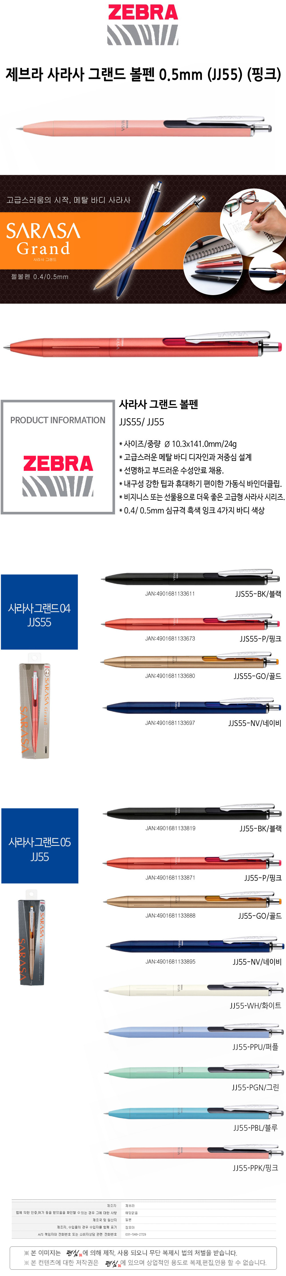 제브라 사라사 그랜드 볼펜 0.5mm JJ55 연핑크